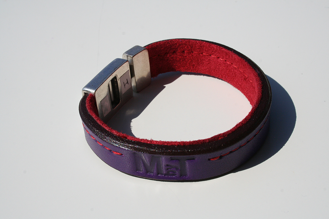 Le bracelet en cuir Boniface peux être entièrement personnalisé : couleurs de cuir et de surpiqûre, gravure…